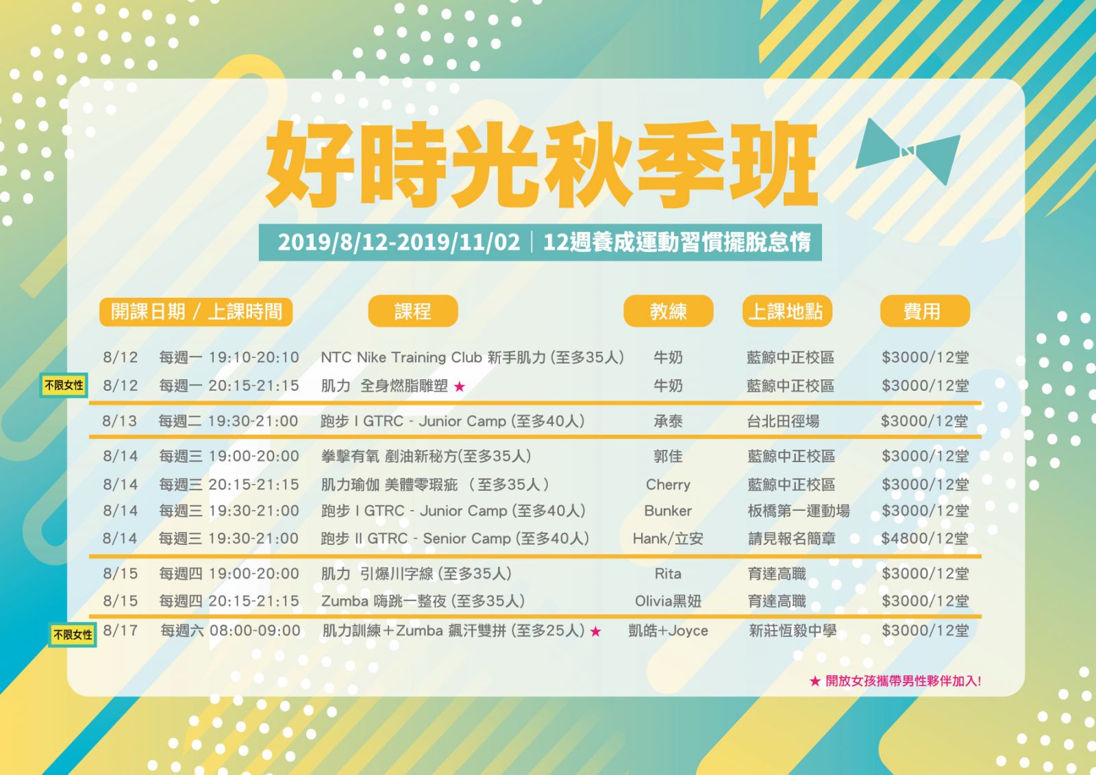 Zumba(週四班 by 黑妞教練、週六班 by Joyce教練):